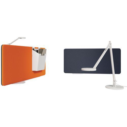 - Se positionne en extrémité de plateau (pince simple) ou enctre deux bureaux (pinces médianes)