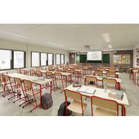 - Il est équipé d’une surface de projection Blanc mat classée non-feu M1.