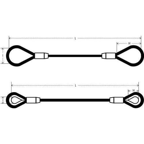 Élingue en câble d'acier inoxydable à 1 brin - Boucles renforcées cossées - Force 200 à 3 200 kg
