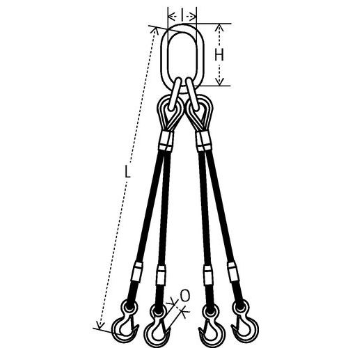 Élingue en câble d'acier inoxydable à 4 brins - Force 850 à 2 300 kg