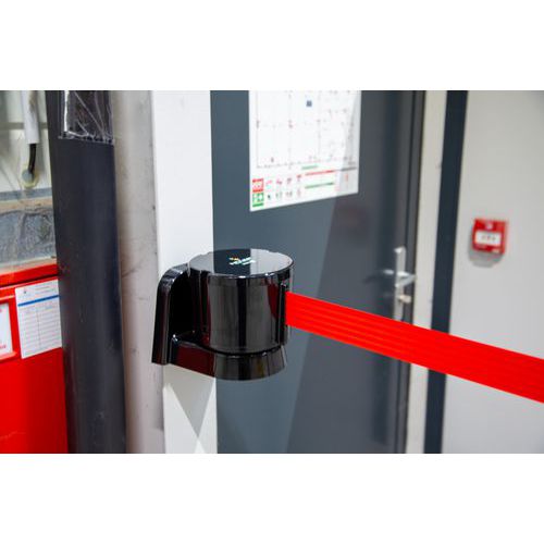- Enrouleur mural à sangle de 12 m pour une délimitation longue distance.