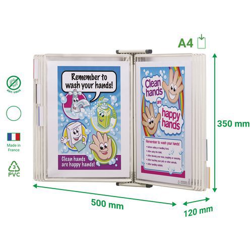 Conçue pour présenter et organiser des informations papier dans des endroits où la prolifération des bactéries présente un risque.