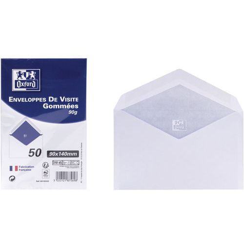 | Intitulé du produit | Enveloppes 90x140 gommées de visite, Avec fenêtre: non, Grammage: 90 g/m², Coloris: Blanc, Hauteur: 140 mm |