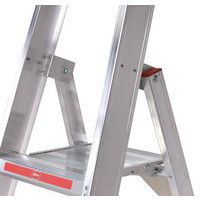 Escabeau professionnel simple accès en aluminium extrêmement léger avec des marches à profil creux. Les marches sont fixées à l’aide de rivets tubulaires. Ainsi, elles peuvent être remplacées rapidement en cas de besoin. Repliez et dépliez l'escabeau de manière rapide et aisée grâce au système de charnière auto-verrouillant sur la plate-forme.