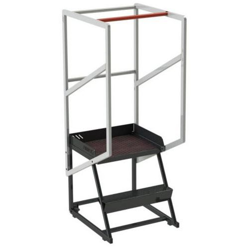 Escabeau roulant étroit avec marches autoporteuses antidérapantes. Fiabilité et haute sécurité : structure entièrement mécano-soudée. Garde-corps de sécurité, butée antiglisse et barre antichute. Plateforme en tôle aluminium larmée antidérapante. Escabeau roulant léger, compact et maniable Roulettes avant non tachantes. Hauteur garde-corps 1 m. Charge maxi (kg) : 150 Finition : Époxy