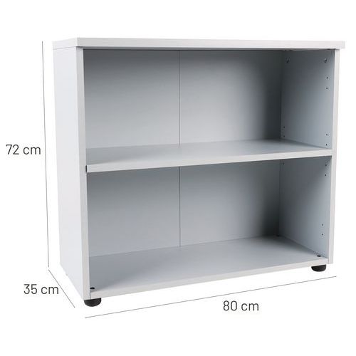 Aménagement personnalisable grâce aux tablettes réglables. Bibliothèque avec pieds patins noirs.