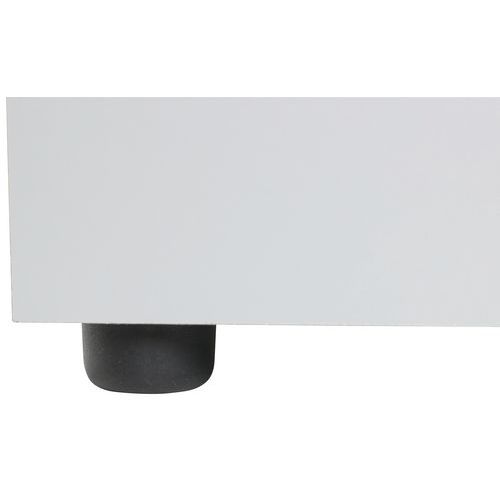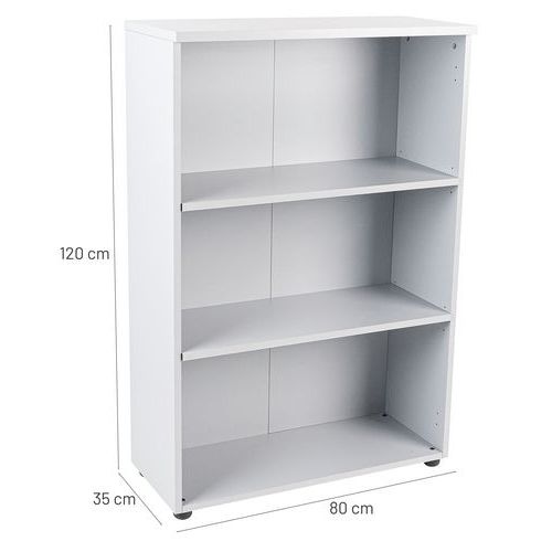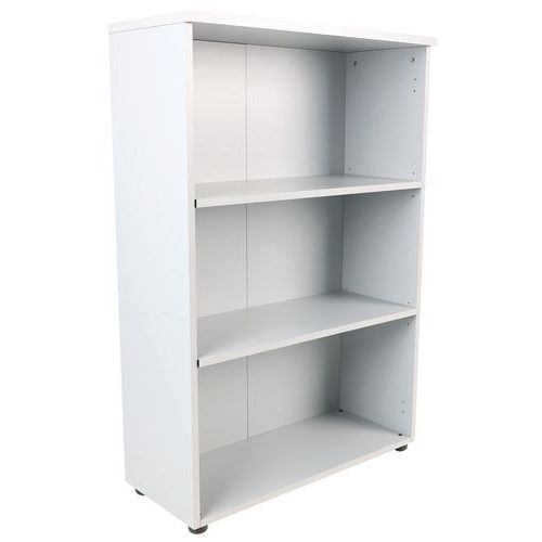 Aménagement personnalisable grâce aux tablettes réglables. Bibliothèque avec pieds patins noirs. Agrandissez votre espace de travail avec un élément assorti