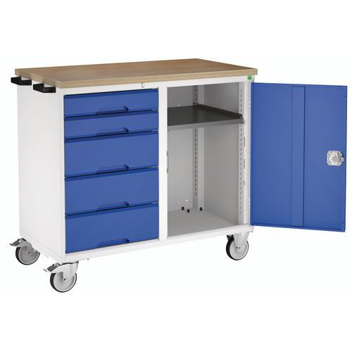 Établi mobile robuste et verrouillable avec plan de travail solide en multiplis.