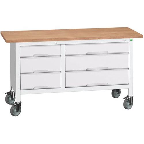 Etabli Monobloc Roulant Verso1500x600 M15, Hauteur hors tout: 830 mm, Nb de tiroirs: 6