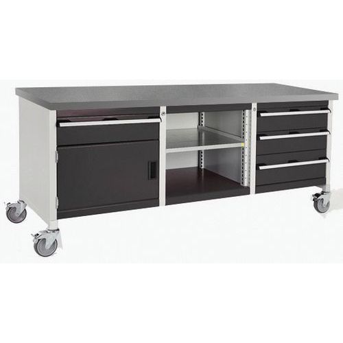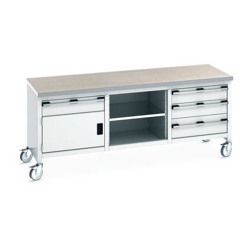 Etabli roulant Cubio - plateau linoléum 1 porte - tiroir et tablette - Bott