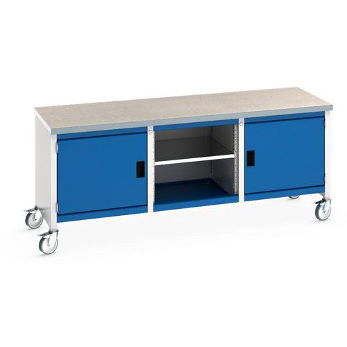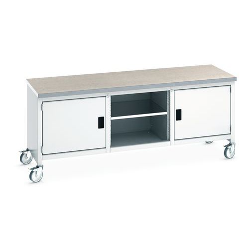 Etabli roulant Cubio - plateau linoléum 2 portes et tablette - Bott