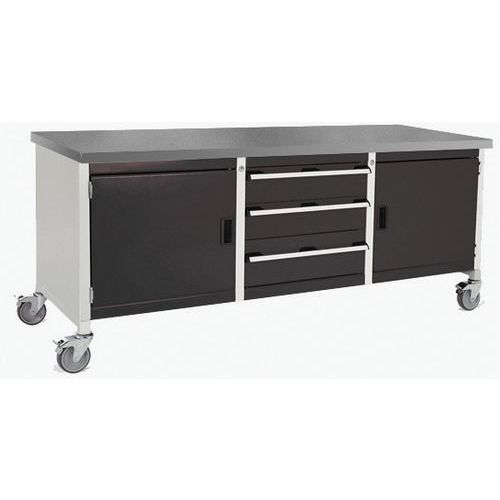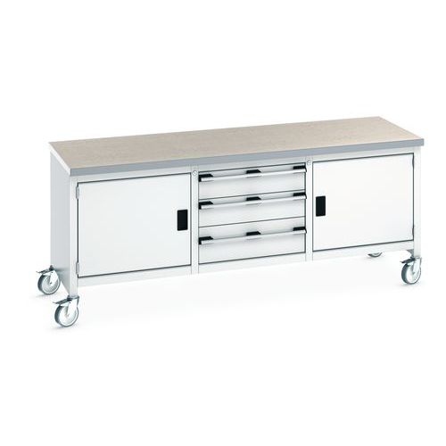 Etabli roulant Cubio - plateau linoléum 2 portes - tiroir et tablette - Bott