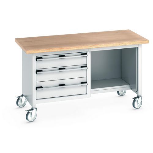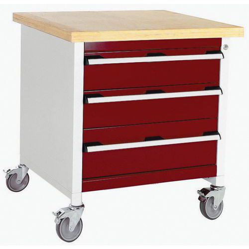 Etabli roulant monobloc Cubio - plateau hêtre et tiroir - Bott