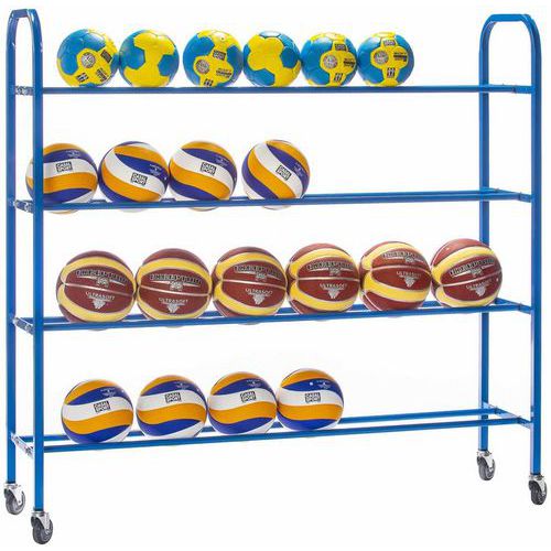 | Intitulé du produit | Etagère à ballons, Matériau: Acier, Hauteur: 145 cm, Largeur: 40 cm, Longueur: 150 cm, Coloris: Bleu |
