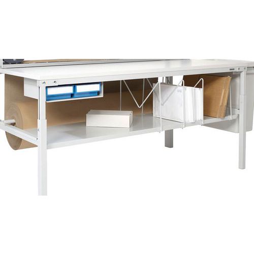 Tablette auxiliaire en acier ASSA. Tablette pour distributeurs de papier A4 et de scotch (max. 2 unités par tablette). Montée sur rail à bacs. Charge max 3 kg. Tablette inférieure en acier Suspendue sur les barres horizontales. Charge max. 30 kg. Tablette auxiliaire SH. Tablette réglable en hauteur Stratifié de 25 mm d'épaisseur, charge max. 50 kg. Arceaux de séparation PDH. Hauteur 400 mm. A combiner avec l'étagère ALH. Les arceaux de séparation sont livrés par 5. Arceaux de séparation M bas LDH. Réglage progressif 4 pièces par set Forme M (le point le plus bas à 105 mm de la tablette). Plateau latéral. Se fixe facilement aux pieds de la table. Peut se fixer à gauche ou à droite de la table, avec les supports placés au-dessus ou en-dessous. Hauteur réglable de 575 à 900 mm du sol. Rebord arrière LIST. Convient pour le tables de travail WB. Empêche les éléments de tomber de la tablette. Peut se monter sur la tablette inférieure AT ou la tablette ALH.