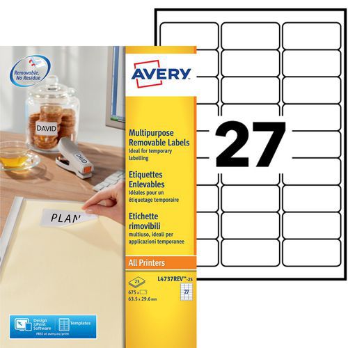 Étiquette blanche repositionnable Avery, Nb d'étiquettes/planche: 27, Nb d'étiquettes: 675