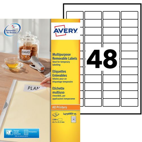 Étiquette blanche repositionnable Avery, Nb d'étiquettes/planche: 48, Nb d'étiquettes: 1200