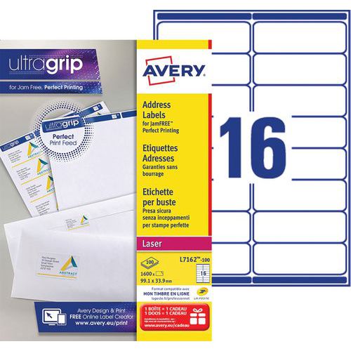 Étiquette avec fonction facile à décoller pour vous aider dans vos projets de publipostage. Imprime avec un alignement parfait grâce à la technologie ultragrip. Compatible avec toutes les marques d'imprimantes laser et garantie sans bourrage.
