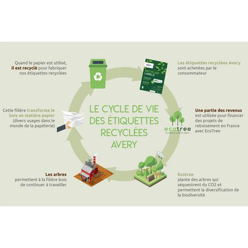 Étiquette recyclée Avery, Nb d'étiquettes/planche: 24, Nb d'étiquettes: 2400, Étiquette longueur: 63.5 mm Étiquette recyclée Avery, Nb d'étiquettes/planche: 24, Nb d'étiquettes: 2400, Étiquette longueur: 63.5 mm