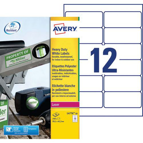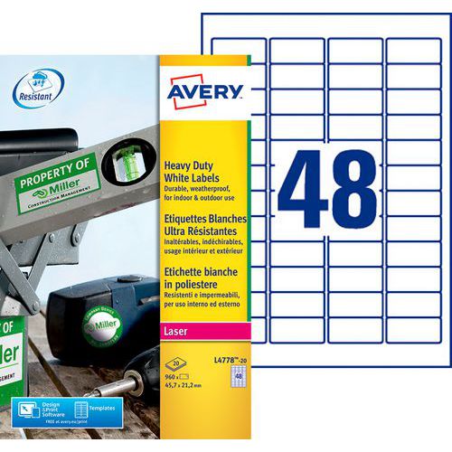 Étiquette autocollante ultra-résistante blanche - Impression Laser Étiquette autocollante ultra-résistante blanche - Impression Laser