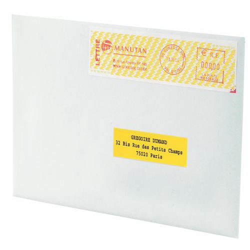 Étiquette colorée prédécoupée pour une identification claire et rapide. Enlevable sans laisser de traces, elle adhère parfaitement même après plusieurs utilisations. Compatible toutes imprimantes: laser, jet d'encre ou copieurs.