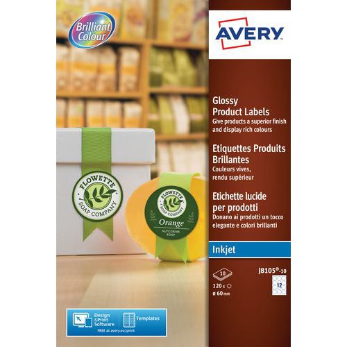 | Intitulé du produit | Étiquette produit, Nb d'étiquettes/planche: 12, Nb d'étiquettes: 120, Diamètre Ø: 60 mm |