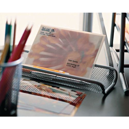 - Une fois collée sur l'enveloppe l'étiquette disparaît, seul le texte est visible.
