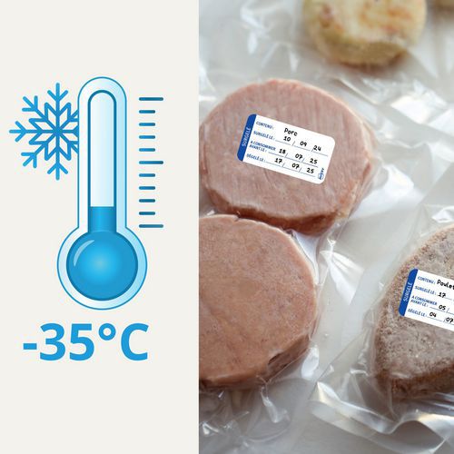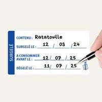 | Intitulé du produit | Etiquettes surgélation traçabilité alimentaire pré-imprimée, Nb d'étiquettes/planche: 200 |
