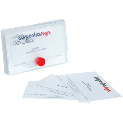 | Intitulé du produit | Étui à bouton pression pour cartes de visite, Type de porte-carte: Étui, Longueur: 92 mm, Largeur: 62 mm |