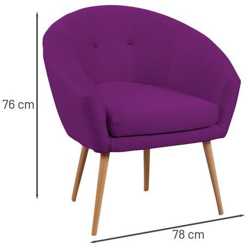 Fauteuil d'accueil Armand offrant un large choix de coloris Structure panneau de particules épaisseur 15 mm Revêtement tissu 100% polyester Coussin assise fixe, mousse polyuréthane épaisseur 8 cm, densité 28 kg/m3 L/H/P assise : 46 x 46 x 46 cm. Dossier hauteur 35 cm. L/H/P fauteuil : 76 x 81 x 66 cm. Pieds Ø 3 cm en bois massif verni naturel. Livré pieds à monter.