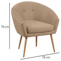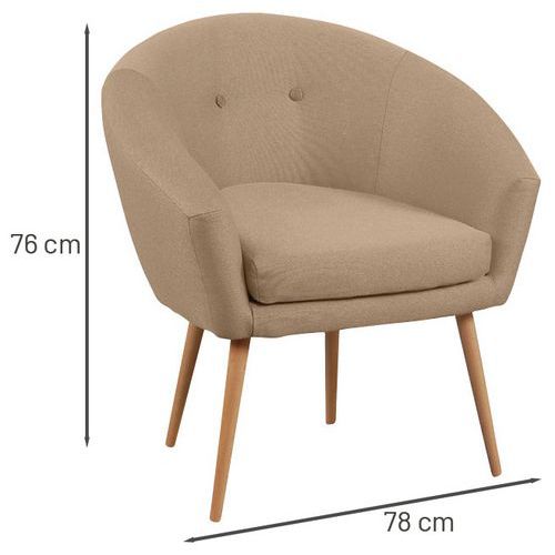 Fauteuil d'accueil Armand offrant un large choix de coloris Structure panneau de particules épaisseur 15 mm Revêtement tissu 100% polyester Coussin assise fixe, mousse polyuréthane épaisseur 8 cm, densité 28 kg/m3 L/H/P assise : 46 x 46 x 46 cm. Dossier hauteur 35 cm. L/H/P fauteuil : 76 x 81 x 66 cm. Pieds Ø 3 cm en bois massif verni naturel. Livré pieds à monter.