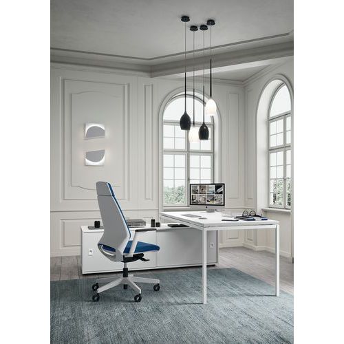 Accoudoirs avec réglage 3D (Ecartement, hauteur et profondeur par rapport à l'assise). Mécanisme synchrone pour une utilisation intensive Support lombaire réglable en hauteur Dossier en nylon. Assise en multi-plis de hêtre.