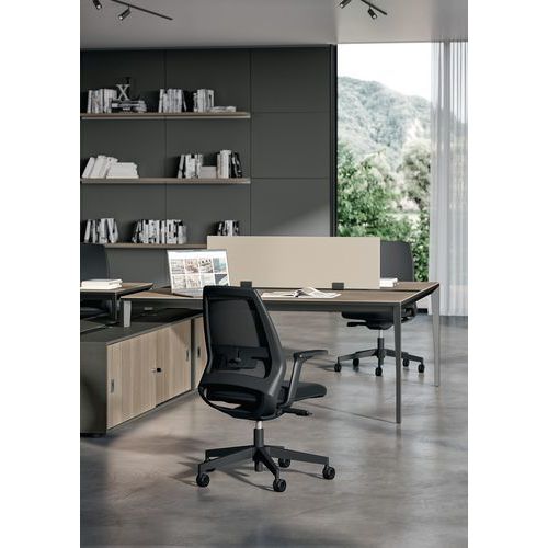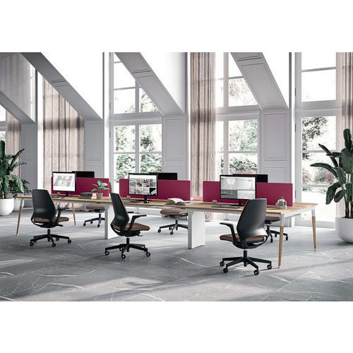 Accoudoirs avec réglage 3D (Ecartement, hauteur et profondeur par rapport à l'assise). Mécanisme synchrone pour une utilisation intensive Support lombaire réglable en hauteur Dossier en nylon. Assise en multi-plis de hêtre.