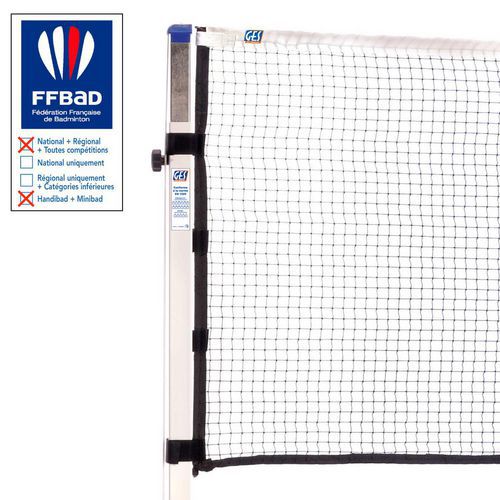 Filet de Badminton homologué FFBAD GES, idéal pour le milieu scolaire, les tournois et les compétitions.