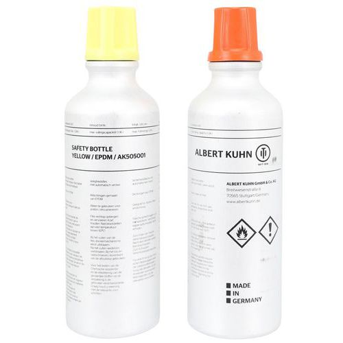 | Intitulé du produit | Flacon de sécurité, Coloris: Jaune, Hauteur hors tout: 235 mm, Ø hors tout: 65 mm, Matériau: Aluminium |