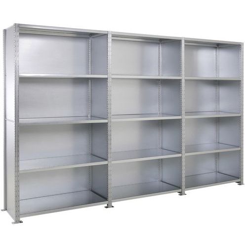 Solide panneau arrière tôle pleine galvanisée. Stabilise et renforce la structure du rayonnage. À insérer dans les montants à l’aide des crochets. Époxy gris clair, RAL 7035.