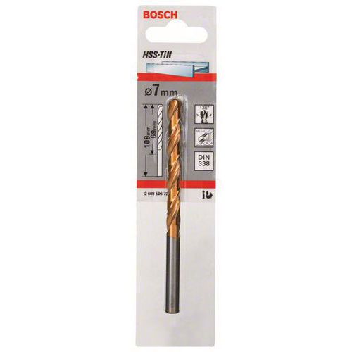 Forets à métaux rectifiés HSS-TiN, DIN 338, Longueur: 109 mm, Longueur utile: 69 mm, Foret Ø: 7 mm Forets à métaux rectifiés HSS-TiN, DIN 338, Longueur: 109 mm, Longueur utile: 69 mm, Foret Ø: 7 mm