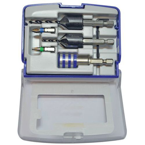 | Intitulé du produit | Forets bois 3 pointes Fraise 90° quick change, Nb de pièces: 5, Matériau: Acier, Type de support: Plastique |
