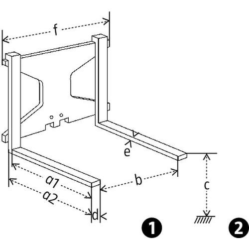Fourches réglables en largeur permettant de soulever des palettes de différentes dimensions. Fabriqué en UE CE Force (kg) : 1000