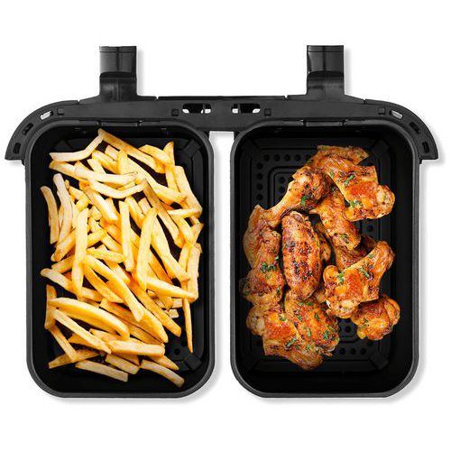 - Friteuse Air Fry Digital Duo sans huile 2 paniers avec revêtement antiadhésif.
