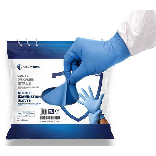 - Le gant nitrile en sachet OneProtek est ambidextre et non poudré.