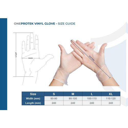 - Disposant des normes médicale, chimique et alimentaire, le gant vinyle OneProtek et adapté à tous les secteurs d'activité.