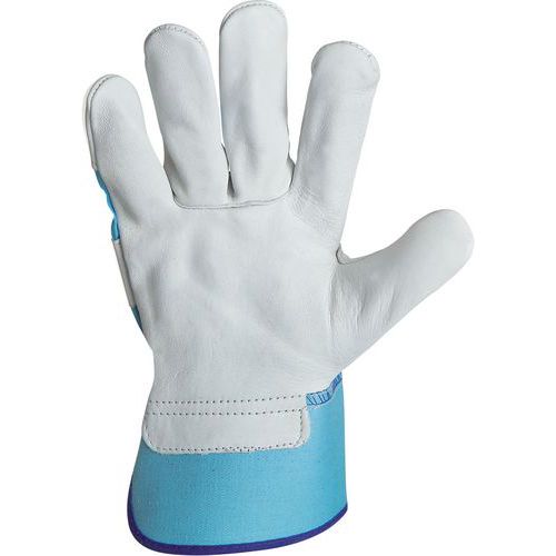 Gants à paume doublée coton en cuir taille 10, Matière: Cuir, Gant taille: 10, Coloris: Bleu/gris