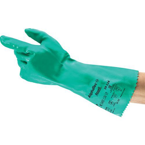 | Intitulé du produit | Gants de protection chimique Alphatec®, Matière: Nitrile, Coloris: Vert, Gant taille: 8 |