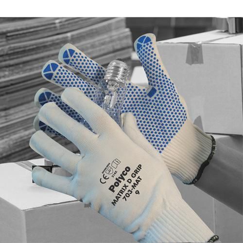 Coque tricotée sans couture avec paume recouverte de picots en PVC.