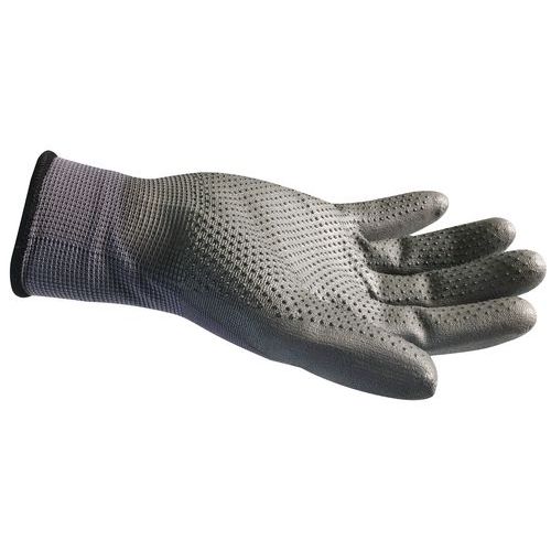 Gants de manutention gris à picots PVC, Enduction matière: Polyuréthane, Matière textile: Nylon