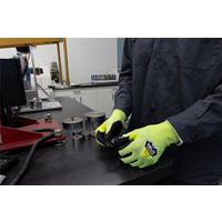 Gant de protection Helix 3062 contre les coupures (niveau F), support jauge 18 HPPE/fibres d'acier, enduction paume en mousse nitrile offrant une adhérence en milieux secs comme humides, coloris haute visibilité, compatible avec les écrans tactiles.