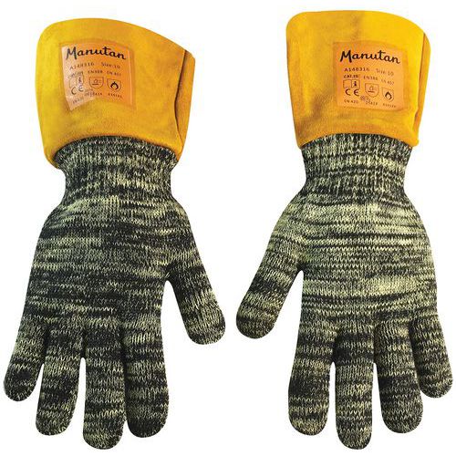 | Intitulé du produit | Gants de protection chaleur jusqu'a 100°C, Matière textile: Cuir, Gant taille: 10, Coloris: Noir |