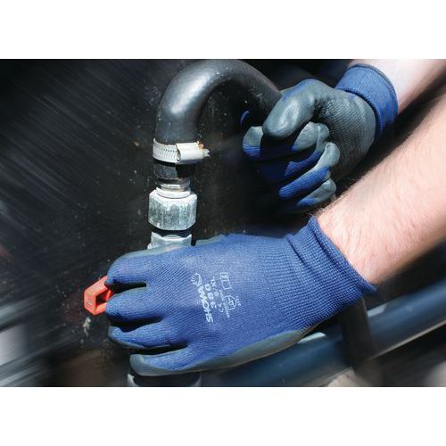 - Mousse de nitrile protégeant la main contre la pénétration d’huiles, d’hydrocarbures et de graisses