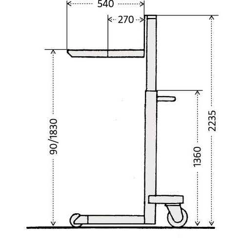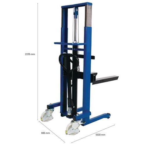 | Intitulé du produit | Gerbeur à double mât télescopique, Force: 250 kg, Hauteur de levée maxi: 1830 mm, Longueur hors tout: 1000 mm |